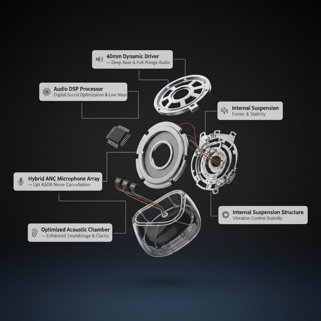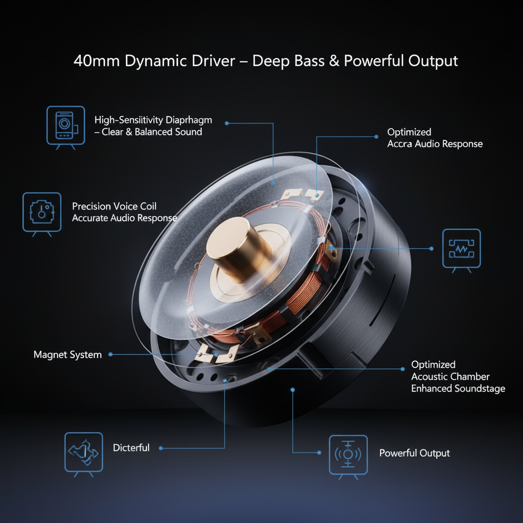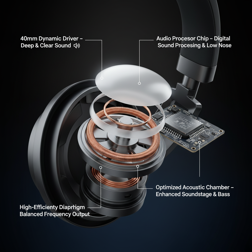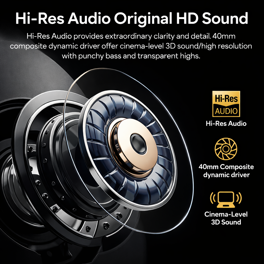 Enjoy exceptional sound clarity powered by Hi-Res Audio technology and advanced 40mm composite dynamic drivers. The QCY H3 delivers rich bass, detailed mids, and crystal-clear highs, creating an immersive listening experience. Every note is reproduced with accuracy, offering cinema-level 3D sound that brings music, movies, and calls to life.
