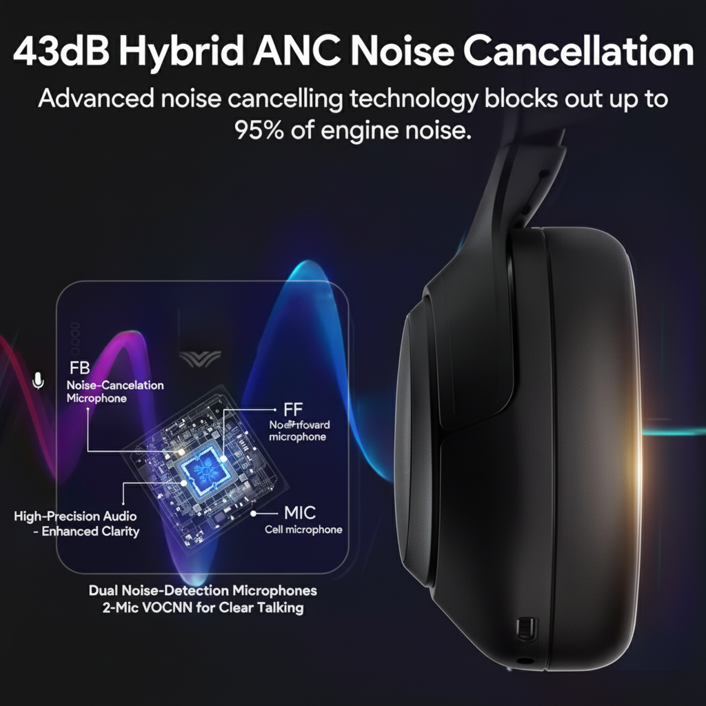 Advanced 43dB hybrid active noise cancellation technology reduces up to 95% of external noise, allowing you to stay fully immersed in your audio. Equipped with intelligent noise-detecting microphones, the QCY H3 effectively minimizes background sounds such as traffic, engines, and chatter, delivering a calm and uninterrupted listening experience wherever you are.